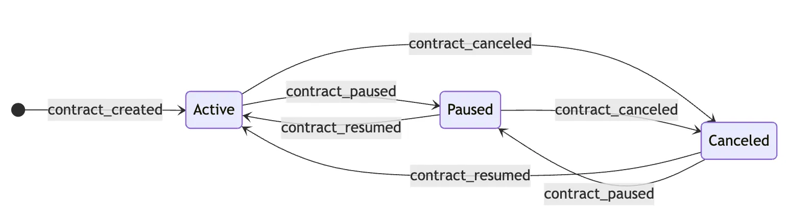 contract_created | contract_paused | Entry: Active contract is put on hold. | +1 |